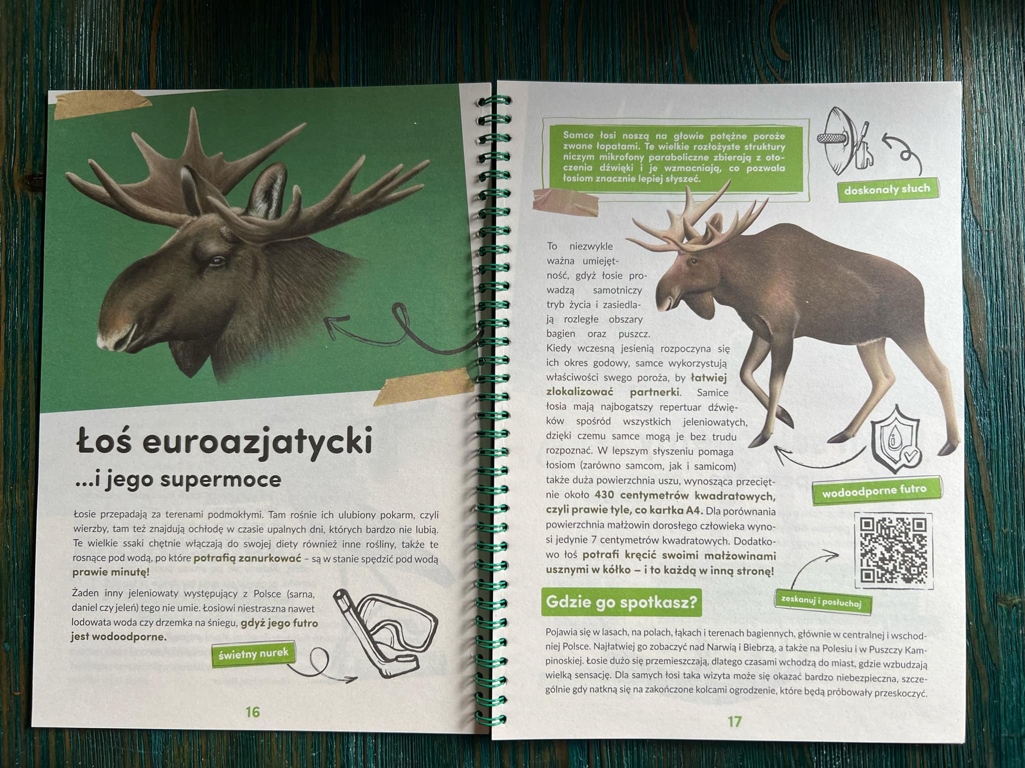 "Autor opisał w niej 37 gatunków zwierząt, które żyją tuż obok nas, a o których często niewiele wiemy oraz 4 gatunki, które wykorzystują odnawialne źródła energii. Ich „supermoce” to wyjątkowe umiejętności takie jak: niezwykła szybkość, nieśmiertelność czy fotosynteza (tak, nadal mówimy o zwierzętach). Książka zawiera wiele ciekawostek zilustrowanych pięknymi rysunkami Dawida Kilona oraz grafikami młodej bydgoskiej artystki Anieli Torzewskiej. (...) Dodatek stanowią przeróżne ćwiczenia, gry i zabawy utrwalające wiedzę w niej zawartą."